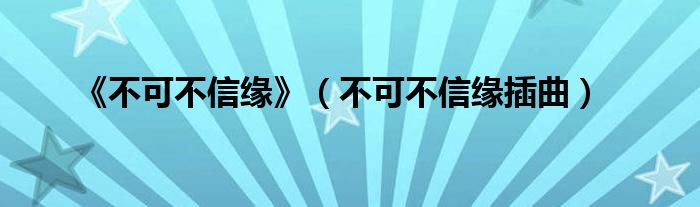 大家好,小问来为大家解答以上问题。《不可不信缘》,不可不信缘插曲这个很多人还不知道,现在让我们一起来看看吧!