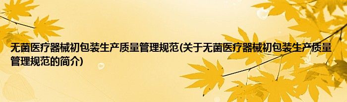 本文关于无菌医疗器械初包装生产质量管理规范的简介就讲解完毕,希望对大家有所帮助。