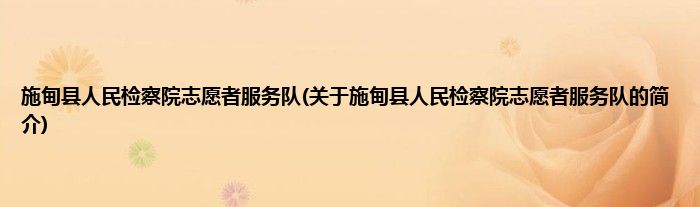 1、 施甸县人民检察院志愿者服务队是由施甸县杨善洲志愿者服务队领导下的志愿团体。