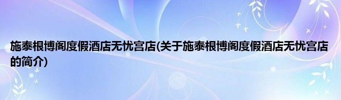 大家好,施泰根博阁度假酒店无忧宫店,关于施泰根博阁度假酒店无忧宫店的简介很多人还不知道,现在让我们一起来看看吧!