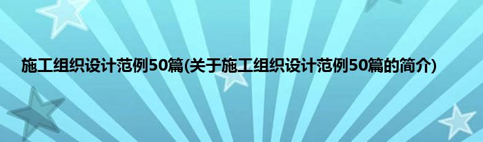 本文关于施工组织设计范例50篇的简介就讲解完毕,希望对大家有所帮助。