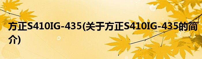 本文关于方正S410IG-435的简介就讲解完毕,希望对大家有所帮助。