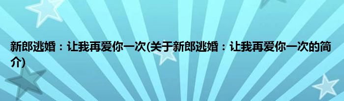 本文关于新郎逃婚:让我再爱你一次的简介就讲解完毕,希望对大家有所帮助。