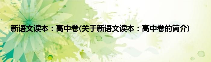 本文关于新语文读本:高中卷的简介就讲解完毕,希望对大家有所帮助。
