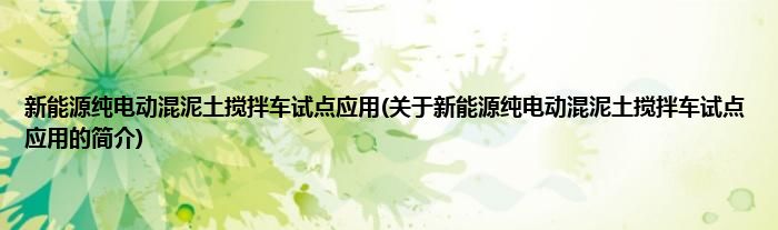 本文关于新能源纯电动混泥土搅拌车试点应用的简介就讲解完毕,希望对大家有所帮助。