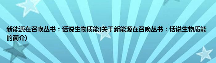 本文关于新能源在召唤丛书:话说生物质能的简介就讲解完毕,希望对大家有所帮助。