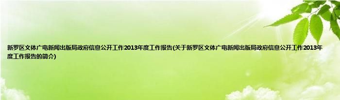 本文关于新罗区文体广电新闻出版局政府信息公开工作2013年度工作报告的简介就讲解完毕,希望对大家有所帮助。