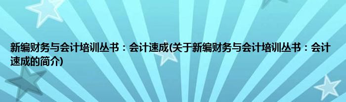 大家好,新编财务与会计培训丛书:会计速成,关于新编财务与会计培训丛书:会计速成的简介很多人还不知道,现在让我们一起来看看吧!