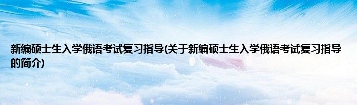 大家好,新编硕士生入学俄语考试复习指导,关于新编硕士生入学俄语考试复习指导的简介很多人还不知道,现在让我们一起来看看吧!