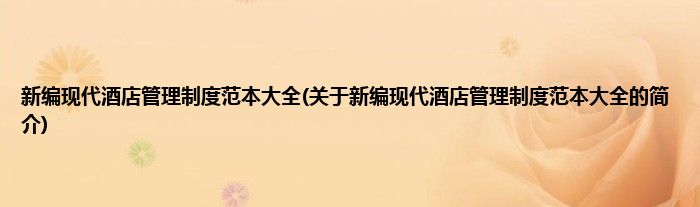本文关于新编现代酒店管理制度范本大全的简介就讲解完毕,希望对大家有所帮助。