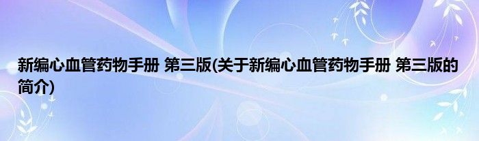 本文关于新编心血管药物手册 第三版的简介就讲解完毕,希望对大家有所帮助。