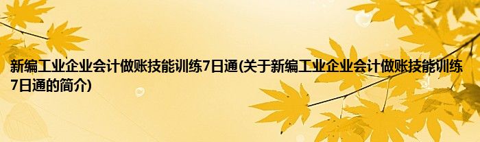 本文关于新编工业企业会计做账技能训练7日通的简介就讲解完毕,希望对大家有所帮助。
