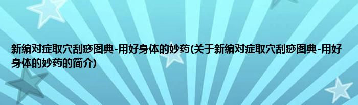 1、 《新编对症取穴刮痧图典-用好身体的妙药》是一本图书。