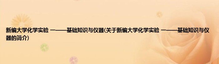 本文关于新编大学化学实验 一——基础知识与仪器的简介就讲解完毕,希望对大家有所帮助。