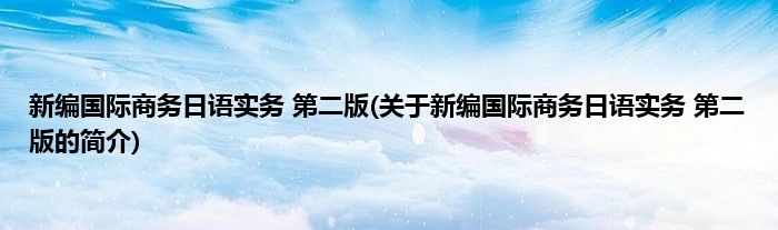 本文关于新编国际商务日语实务 第二版的简介就讲解完毕,希望对大家有所帮助。