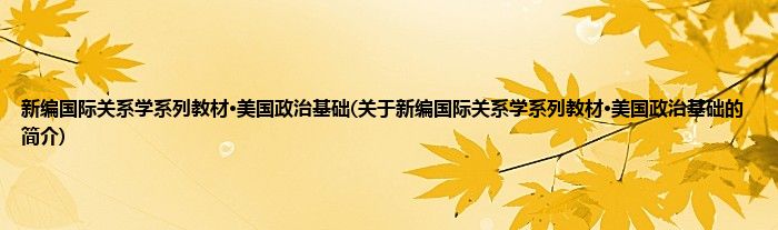 大家好,新编国际关系学系列教材·美国政治基础,关于新编国际关系学系列教材·美国政治基础的简介很多人还不知道,现在让我们一起来看看吧!