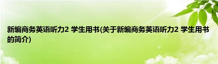 本文关于新编商务英语听力2 学生用书的简介就讲解完毕,希望对大家有所帮助。