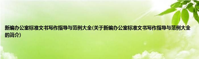本文关于新编办公室标准文书写作指导与范例大全的简介就讲解完毕,希望对大家有所帮助。
