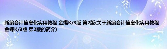 1、 《新编会计信息化实用教程(金蝶K/3版)(第2版)》是2016年1月电子工业出版社出版的图书。