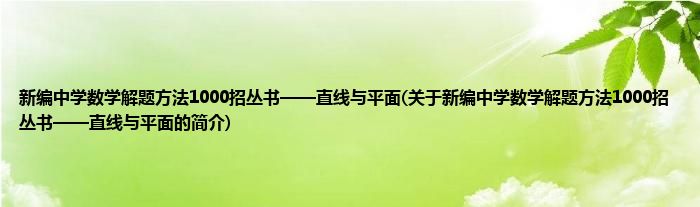 新编中学数学解题方法1000招丛书——直线与平面(关于新编中学数学解题方法1000招丛书——直线与平面的简介)