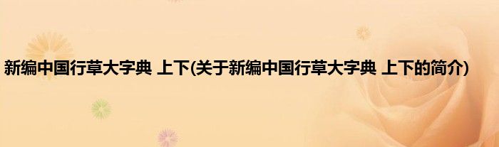 本文关于新编中国行草大字典 上下的简介就讲解完毕,希望对大家有所帮助。