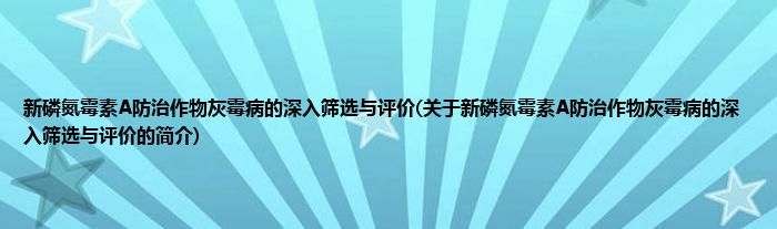 本文关于新磷氮霉素A防治作物灰霉病的深入筛选与评价的简介就讲解完毕,希望对大家有所帮助。