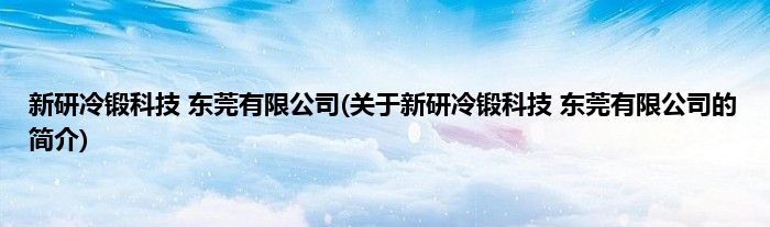 大家好,新研冷锻科技 东莞有限公司,关于新研冷锻科技 东莞有限公司的简介很多人还不知道,现在让我们一起来看看吧!