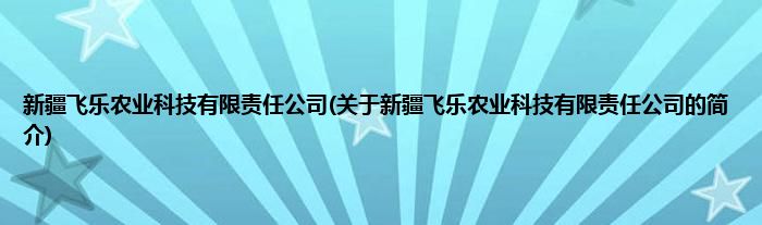 本文关于新疆飞乐农业科技有限责任公司的简介就讲解完毕,希望对大家有所帮助。