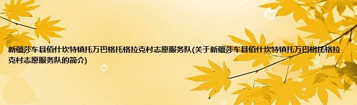 本文关于新疆莎车县佰什坎特镇托万巴格托格拉克村志愿服务队的简介就讲解完毕,希望对大家有所帮助。