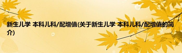 本文关于新生儿学 本科儿科/配增值的简介就讲解完毕,希望对大家有所帮助。