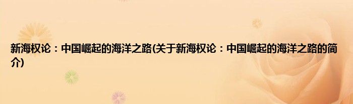 本文关于新海权论:中国崛起的海洋之路的简介就讲解完毕,希望对大家有所帮助。