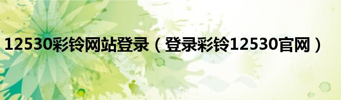 大家好,小问来为大家解答以上问题。12530彩铃网站登录,登录彩铃12530官网这个很多人还不知道,现在让我们一起来看看吧!