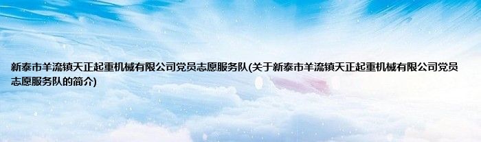 本文关于新泰市羊流镇天正起重机械有限公司党员志愿服务队的简介就讲解完毕,希望对大家有所帮助。