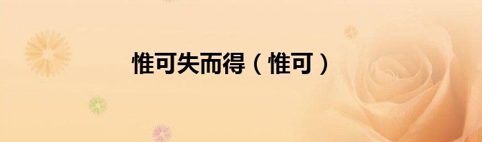 大家好,小问来为大家解答以上问题。惟可失而得,惟可这个很多人还不知道,现在让我们一起来看看吧!