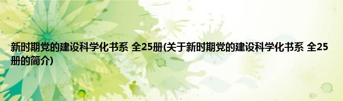本文关于新时期党的建设科学化书系 全25册的简介就讲解完毕,希望对大家有所帮助。
