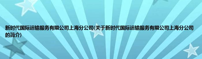 本文关于新时代国际运输服务有限公司上海分公司的简介就讲解完毕,希望对大家有所帮助。