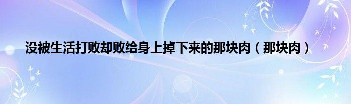 大家好,小问来为大家解答以上问题。没被生活打败却败给身上掉下来的那块肉,那块肉这个很多人还不知道,现在让我们一起来看看吧!