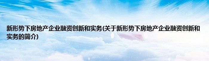 本文关于新形势下房地产企业融资创新和实务的简介就讲解完毕,希望对大家有所帮助。