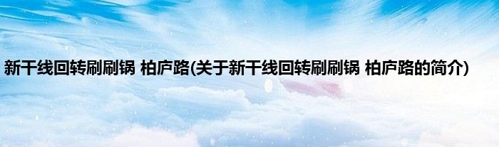 大家好,新干线回转刷刷锅 柏庐路,关于新干线回转刷刷锅 柏庐路的简介很多人还不知道,现在让我们一起来看看吧!