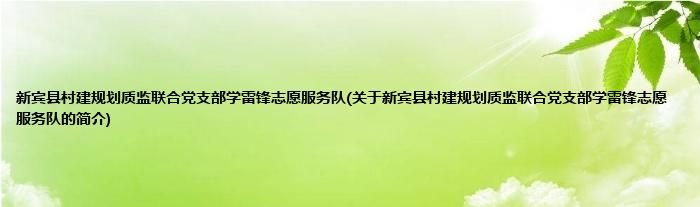 1、 新宾县村建规划质监联合党支部学雷锋志愿服务队是由新宾满族自治县住房和城乡建设局学雷锋志愿服务队领导下的志愿团体。