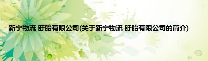 本文关于新宁物流 盱眙有限公司的简介就讲解完毕,希望对大家有所帮助。