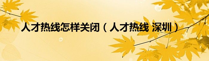 大家好,小问来为大家解答以上问题。人才热线怎样关闭,人才热线 深圳这个很多人还不知道,现在让我们一起来看看吧!