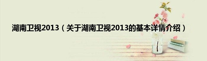 本文关于湖南卫视2013的基本详情介绍就讲解完毕,希望对大家有所帮助。
