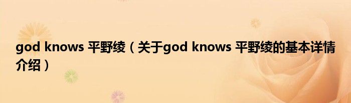 本文关于god knows 平野绫的基本详情介绍就讲解完毕,希望对大家有所帮助。