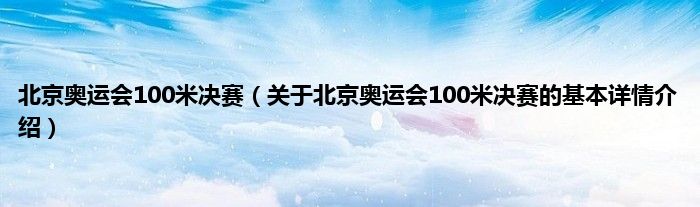 本文关于北京奥运会100米决赛的基本详情介绍就讲解完毕,希望对大家有所帮助。