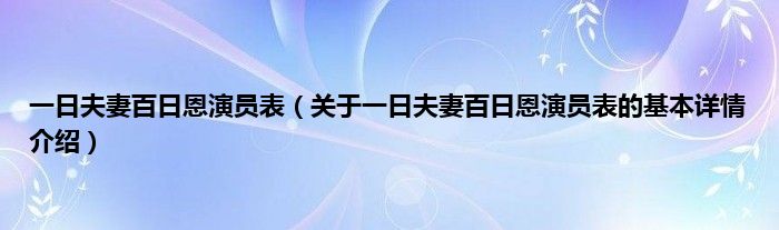 本文关于一日夫妻百日恩演员表的基本详情介绍就讲解完毕,希望对大家有所帮助。