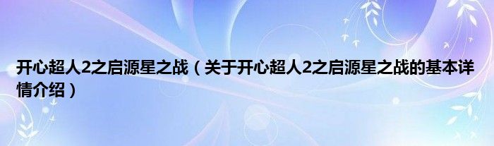 本文关于开心超人2之启源星之战的基本详情介绍就讲解完毕,希望对大家有所帮助。
