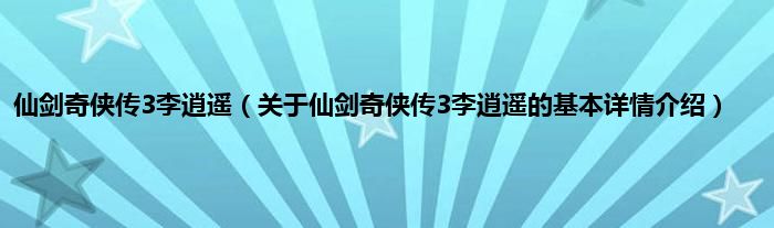 本文关于仙剑奇侠传3李逍遥的基本详情介绍就讲解完毕,希望对大家有所帮助。