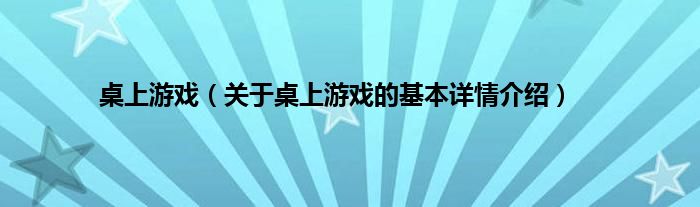 本文关于桌上游戏的基本详情介绍就讲解完毕,希望对大家有所帮助。