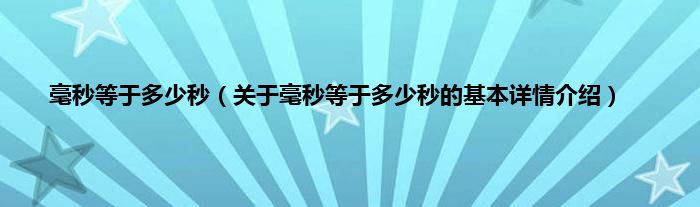 本文关于毫秒等于多少秒的基本详情介绍就讲解完毕,希望对大家有所帮助。